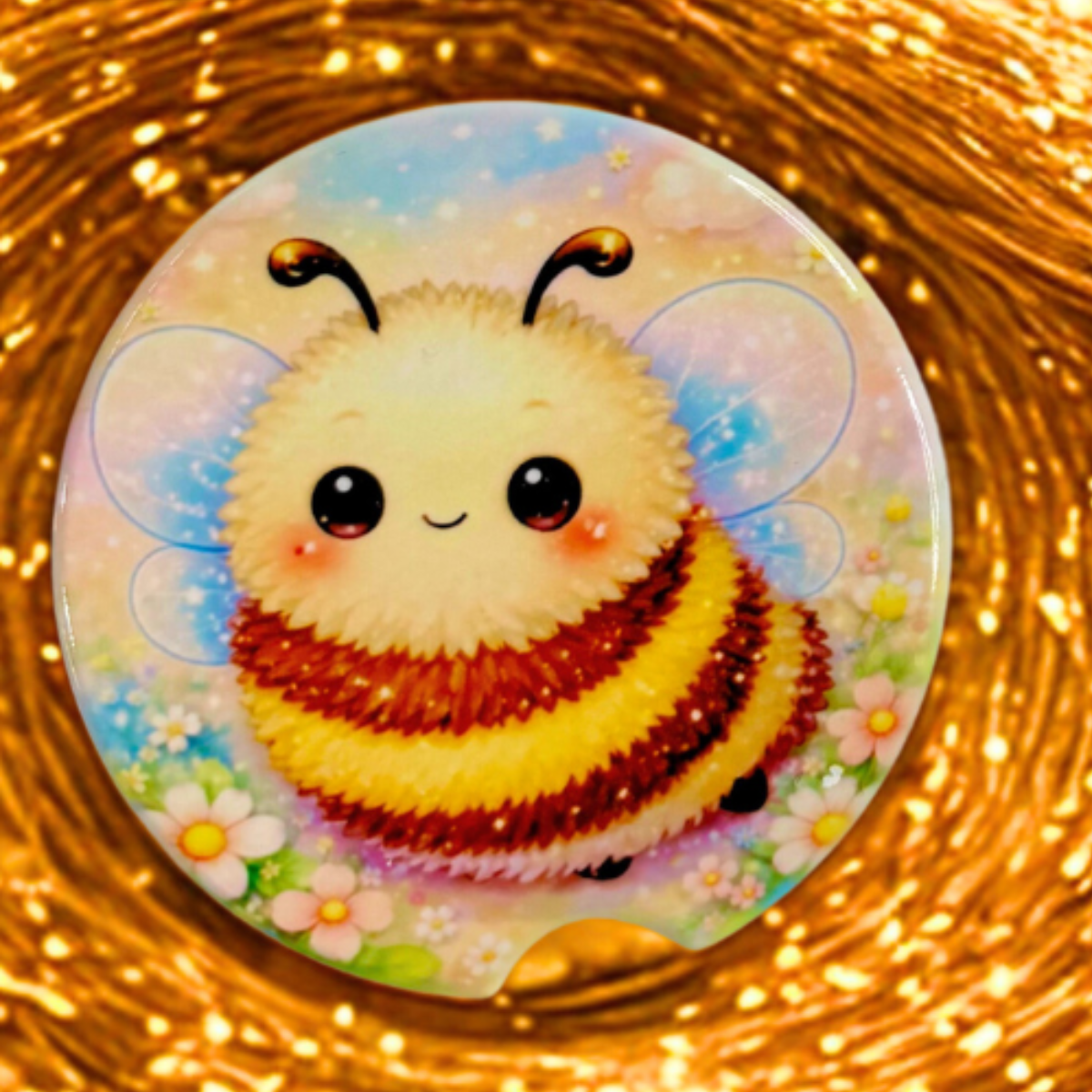 Come check out our adorable Fuzzy Bee ceramic car coaster! Perfect for gifting or for keeping for yourself! Each coaster is sprayed with a UV Protectant spray to seal each coaster and help avoid fading.